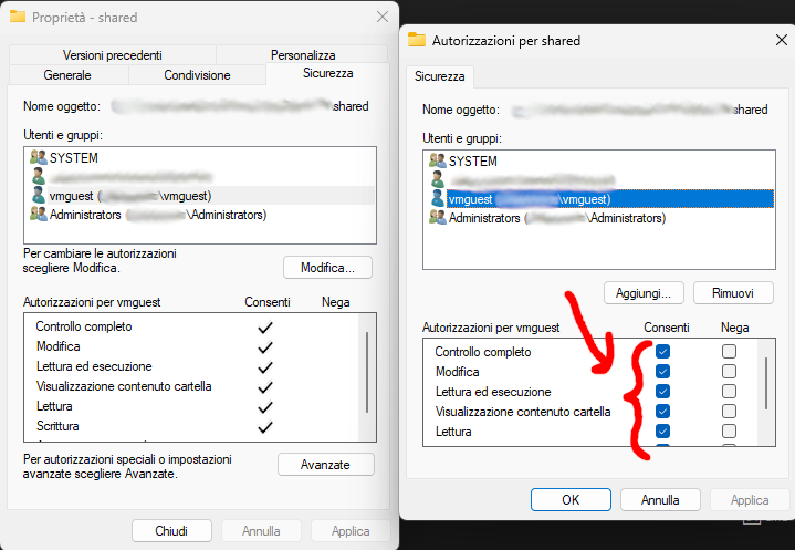Now, important, do the same in the Security tab, else you will get a Permission Error afterwards: